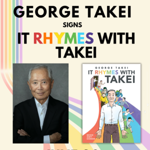 Actor, author, and activist George Takei comes to Vroman’s Bookstore on June 20 for a special signing of his new graphic memoir It Rhymes with Takei. Following the award-winning bestseller They Called Us Enemy, this full-color memoir reveals his most personal story yet, told in full for the first time anywhere. This is a book signing only; there will be no presentation or reading. Each ticket includes access to the signing line and a copy of It Rhymes with Takei, which will be distributed at check-in on the evening of the event. Tickets cost $35 and are now on sale on Eventbrite.